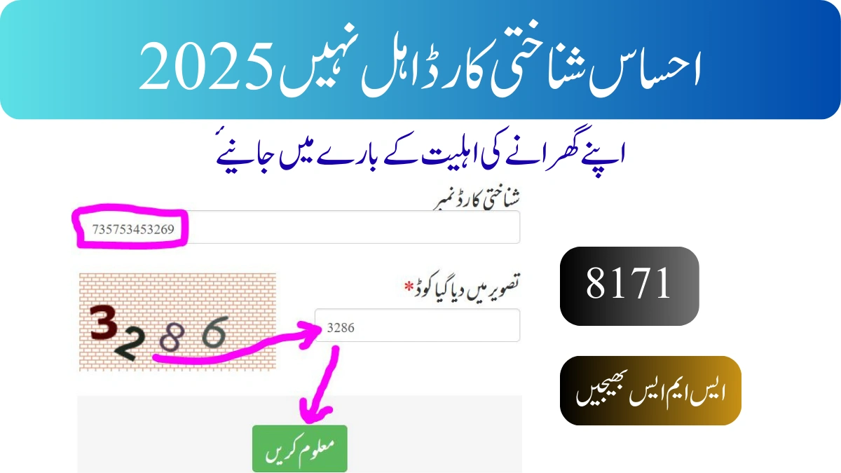 احساس شناختی کارڈ اہل نہیں 2025 اور اس کی مکمل تعارف بیان کرنے جا رہا ہوں کہ یہ پروگرام صرف خواتین کے لیے بنایا گیا ہے اور بہت سی خواتین غریب مسکین وغیرہ ہوتی ہیں جو پیسے نہیں کما سکتی تو ان عورتوں کے لیے بنایا گیا ہے صرف خواتین شناختی کارڈ چیک کر سکتے ہیں